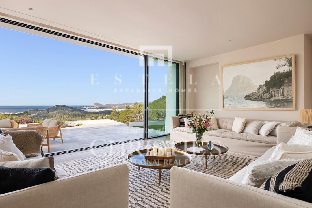 A natural gravitation point, the reception room is oriented towards Santa Eulalia and Formentera in