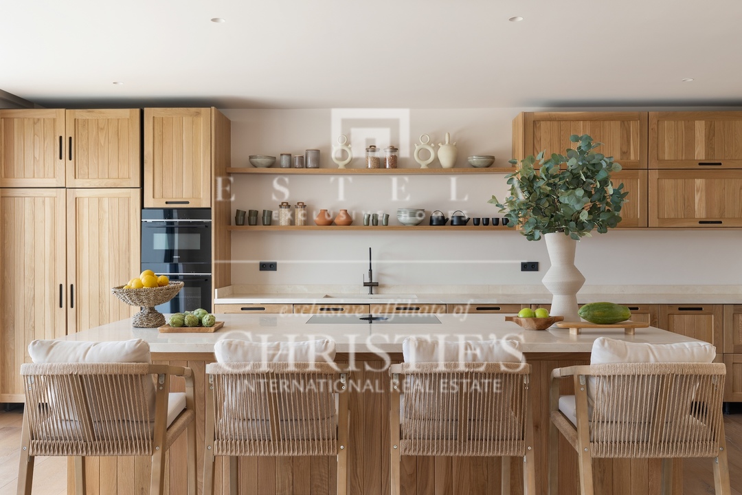 Life here is lived largely outdoors. Set among swaying palms and Mediterranean gardens, a striking pool with a tide machine is wrapped in handcrafted Mallorcan tiles and sits beside an exceptional furnished pool house, with a wine cooler and ice machine. Shaded seating areas, two outdoor kitchens, dining terraces and a delightful greenhouse create a setting for long lunches that slip easily into late evenings.