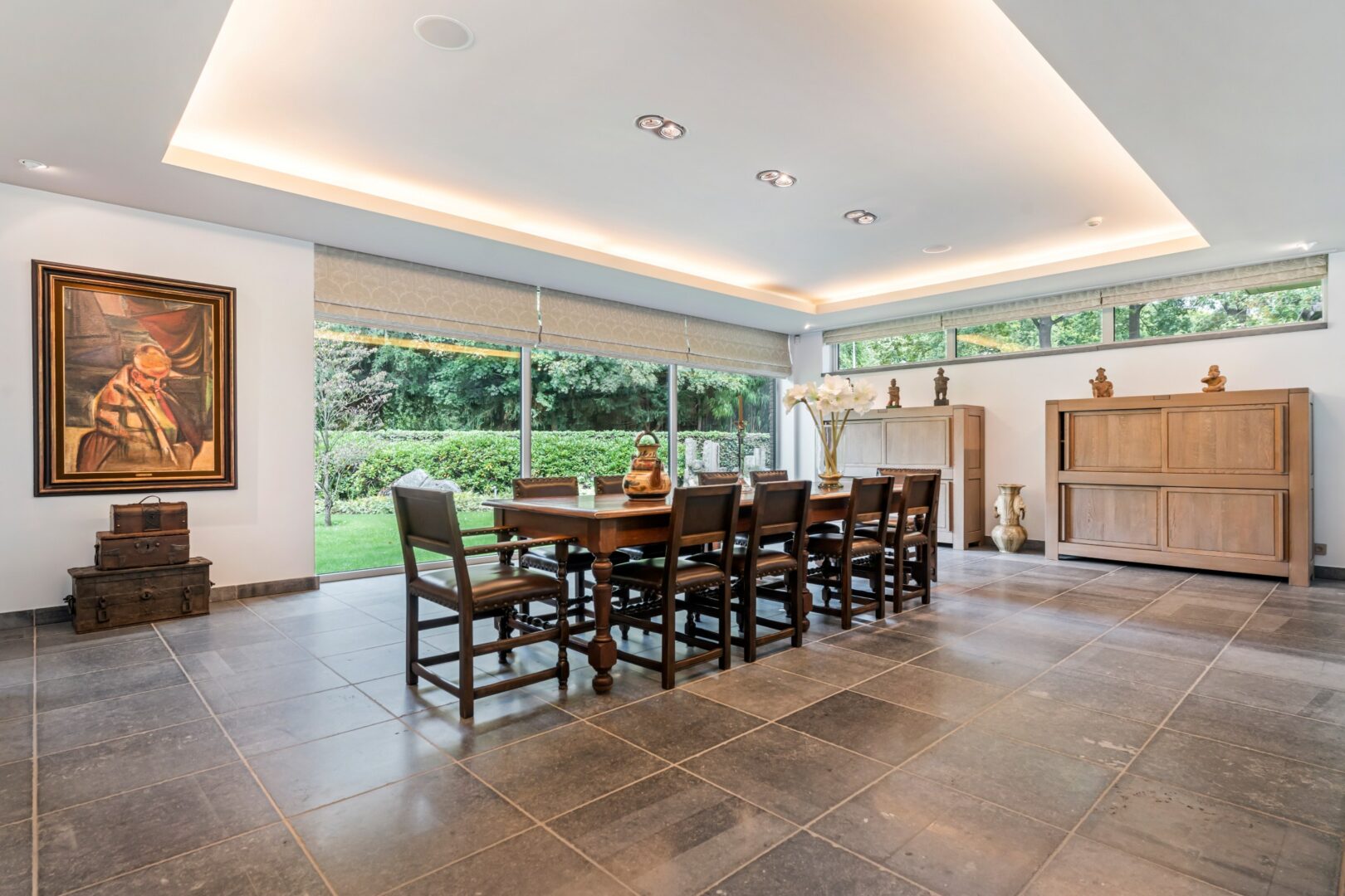 Four generous bedrooms are found in the main house, alongside an Italian wood panelled study with walk-in wardrobes, which could serve as an additional en suite bedroom. The principal suite is the standout: spacious and serene, with two walk-in wardrobes, an elegant en suite and direct access to